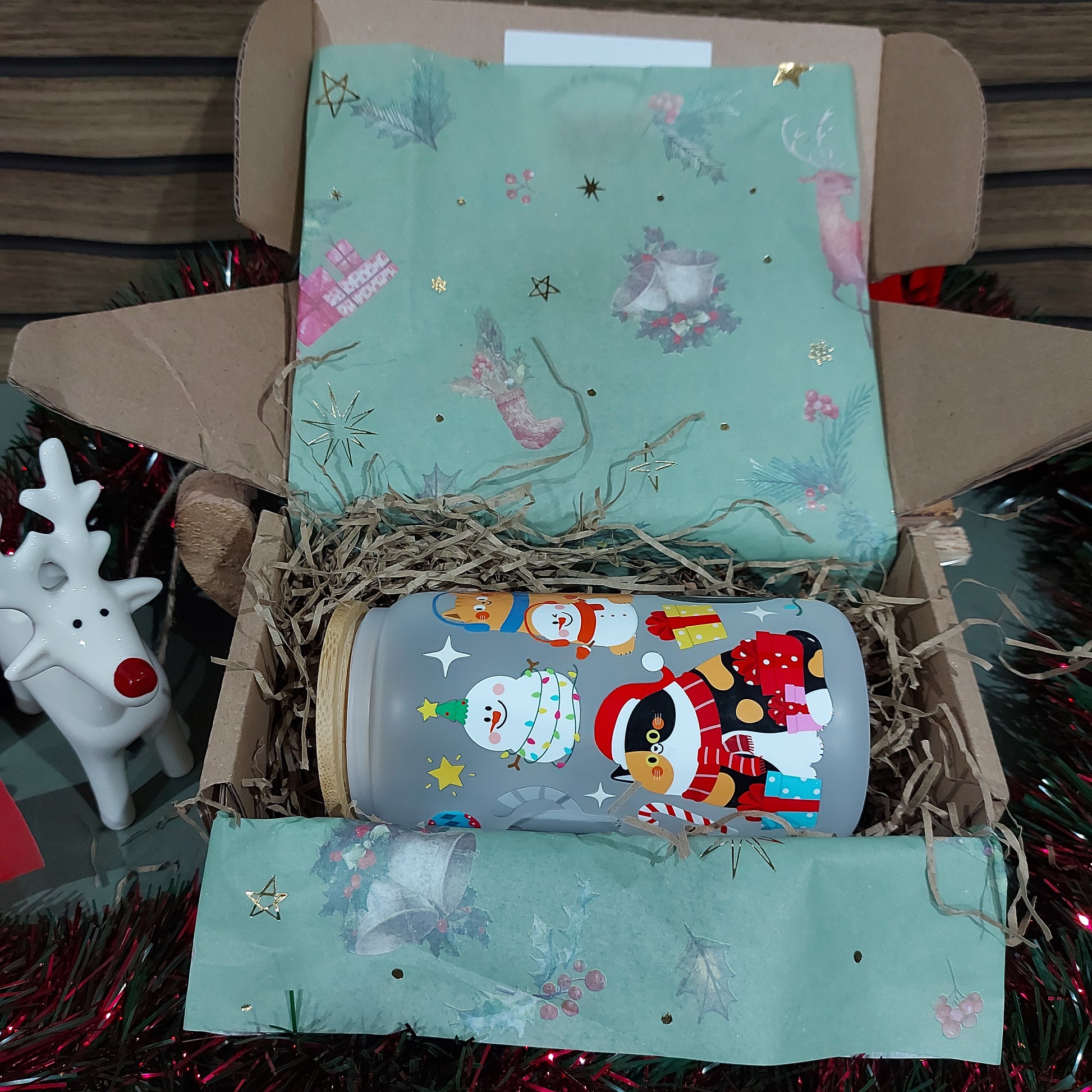 Add instant festive cheer to your favourite drink with this adorable 16oz Christmas Cats & Snowmen Frosted Glass Tumbler.